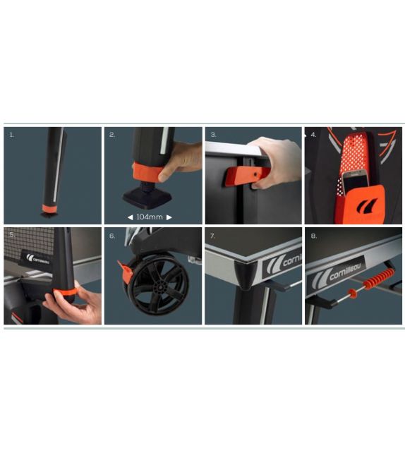 De Rolls onder de vrijetijdstafels De SPORT 500 OUTDOOR zal door buren met bewondering worden onthaald. De tafel beschikt over alle troeven van een Cornilleau: esthetiek, veiligheid, betrouwbaarheid, ergonomie, maar ook sterkte en weerbestendigheid.